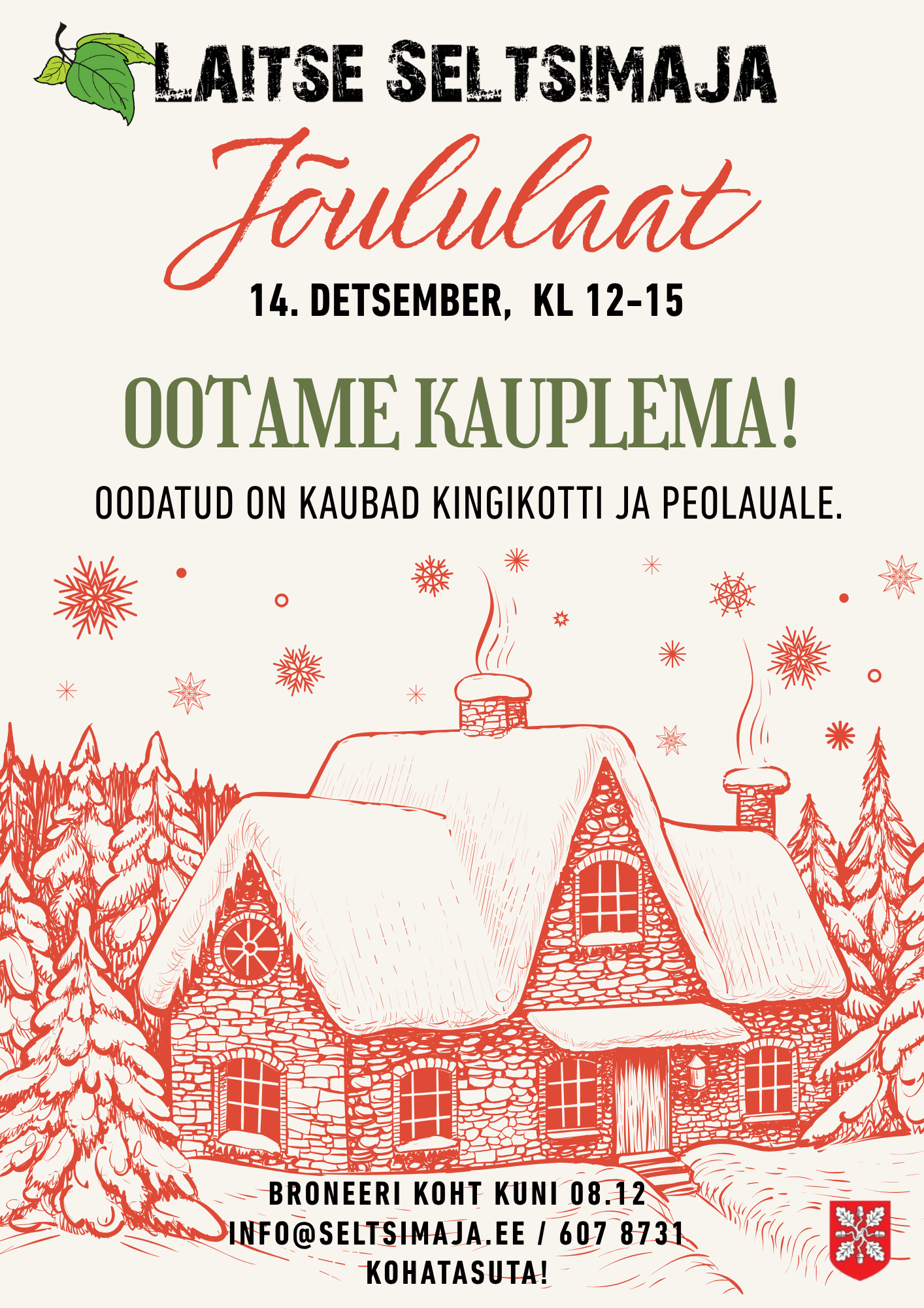 Registreerumine müügikohale kuni 08.12, info@seltsimaja.ee või tel 607 8731