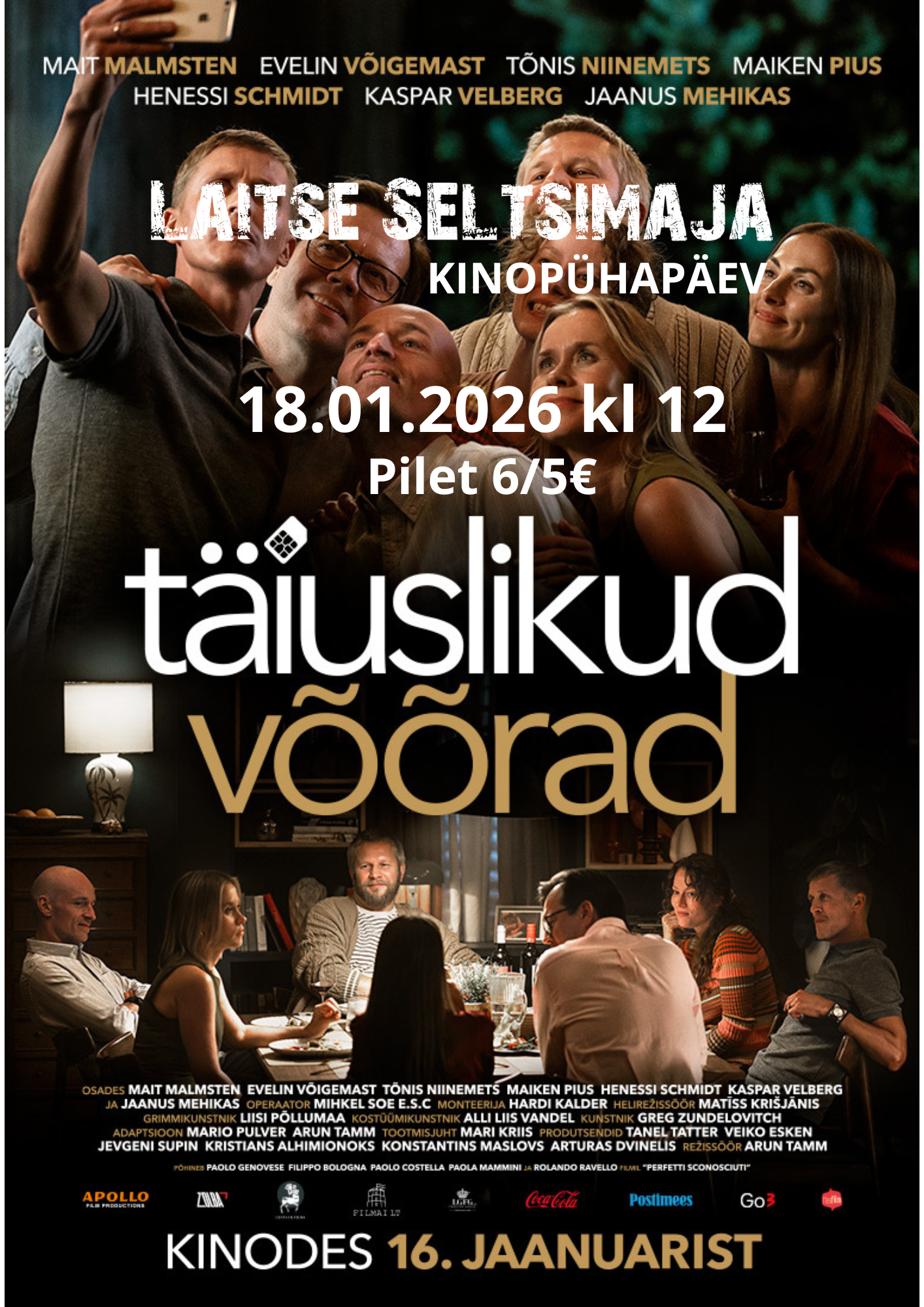 Kinopühapäev Laitse Seltsimajas – Täiuslikud võõrad