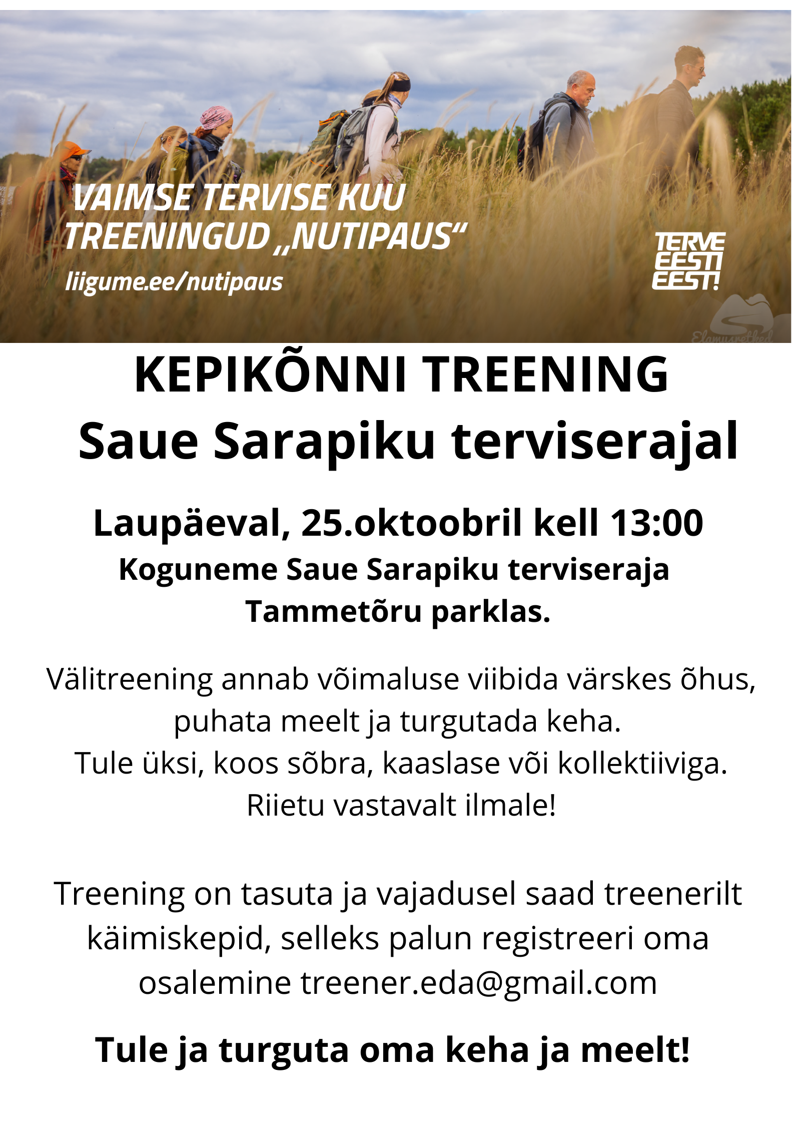 TasutaTule laupäeval, 25.oktoobril Saue Sarapiku terviserajale liikuma ning oma keha ja vaimu turgutama!