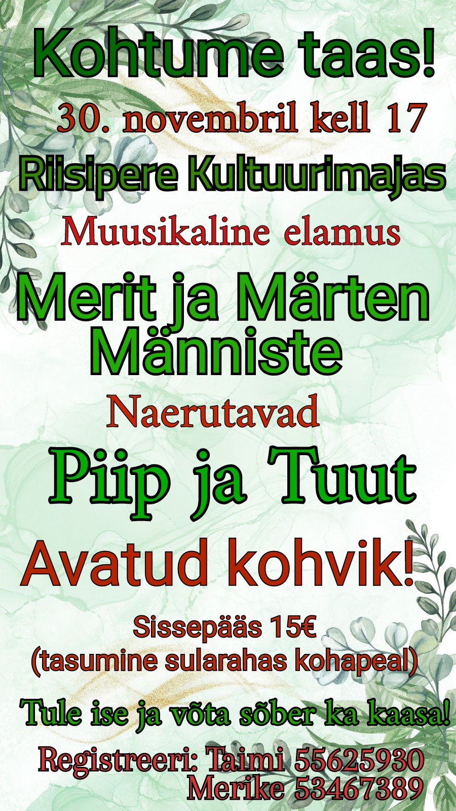 Muusikalist elamust pakuvad Merit ja Märten Männiste,
