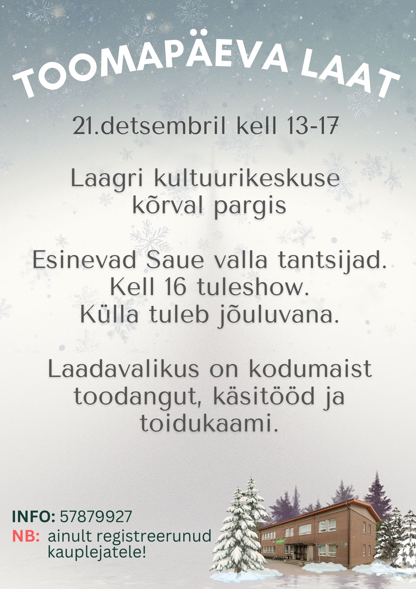 Laagri kultuurikeskuse kõrval pargis 21.detsembril kell 13-17